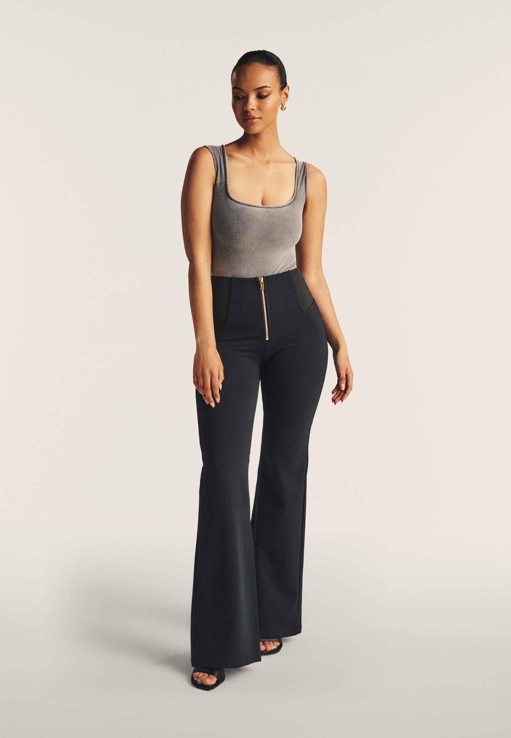 WR.UP®-housut mustana yhdistävät ikonisen Freddy-tyylin poikkeukselliseen mukavuuteen. Niissä on imarteleva korkea vyötärö, joka tarjoaa lempeää tukea, ja elegantti levenevä leikkaus, joka visuaalisesti pidentää jalkoja. Ilmeen täydentää ajaton täyspitkä malli, joka sopii täydellisesti mihin vuodenaikaan tahansa. Valmistettu pehmeästä jersey-neuloksesta, jossa on lisätty joustoa joustavuuden takaamiseksi. Osana WR.UP®-mallistoa ne sisältävät patentoitua teknologiaa, joka on suunniteltu luonnollisesti parantamaan ja muotoilemaan siluettiasi. Luottovaatteesi päiville, jolloin haluat vain tuntea olosi upeaksi.