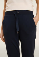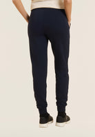 Athletic trousers with ribbed cuffs and rhinestones - Dark Sapphire Blue