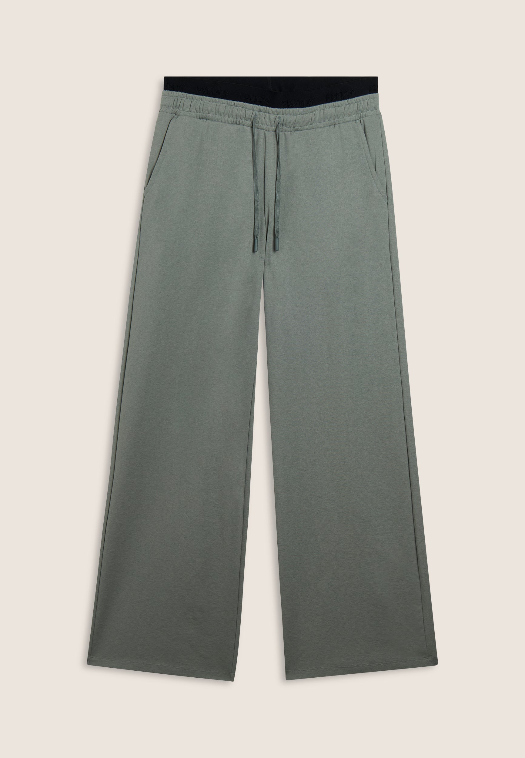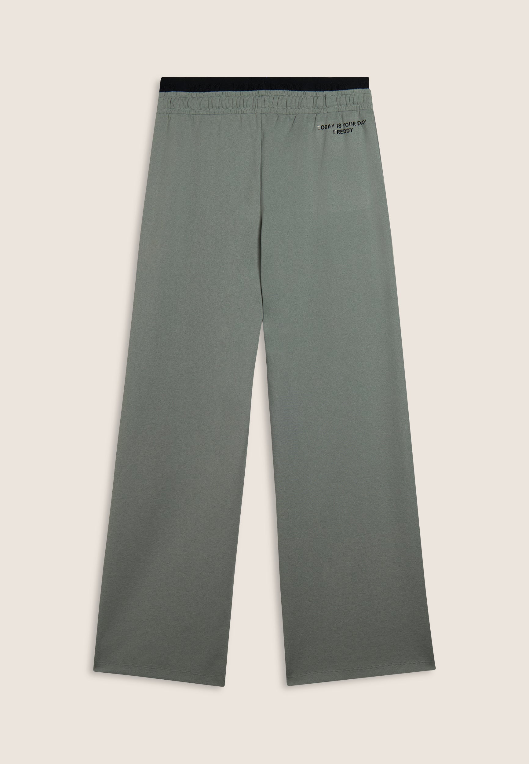Women's oversized brushed fleece trousers with extra-wide leg and low waist. The logoed jacquard elastic and the adjustable drawstring combine with the embroidered “Motion is a Therapy” slogan on the side. With slant besom pockets.