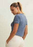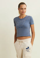 Women's cropped T-shirt with rhinestone Mickey Mouse
