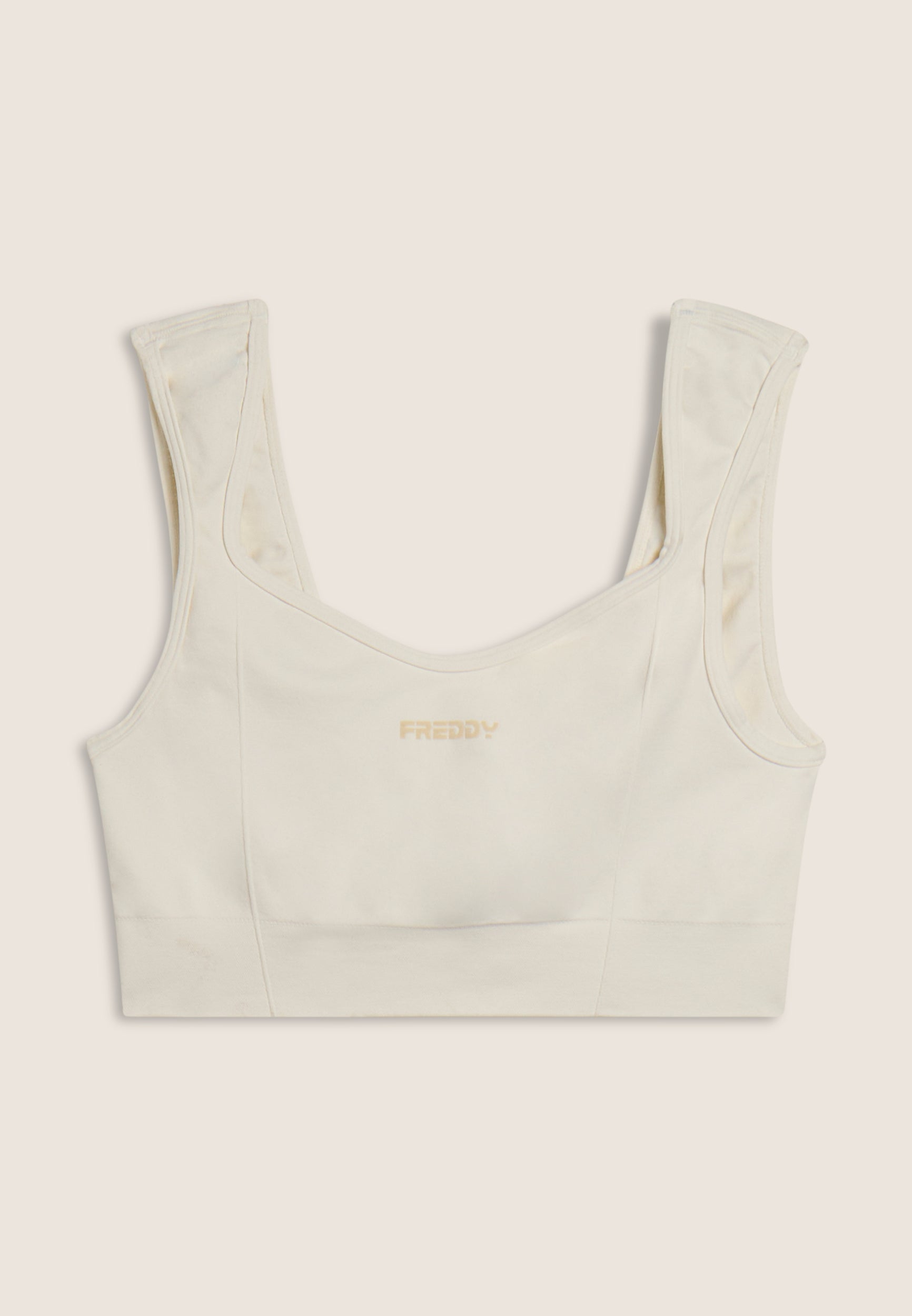 With its feminine and comfortable design, this light support sports top is perfect for yoga and low intensity activities. Sweetheart neckline at the front and square neckline at the back with regular shoulder straps. The nylon jersey performance fabric is soft, breathable and lightweight, with a small FREDDY contrasting logo on the front.