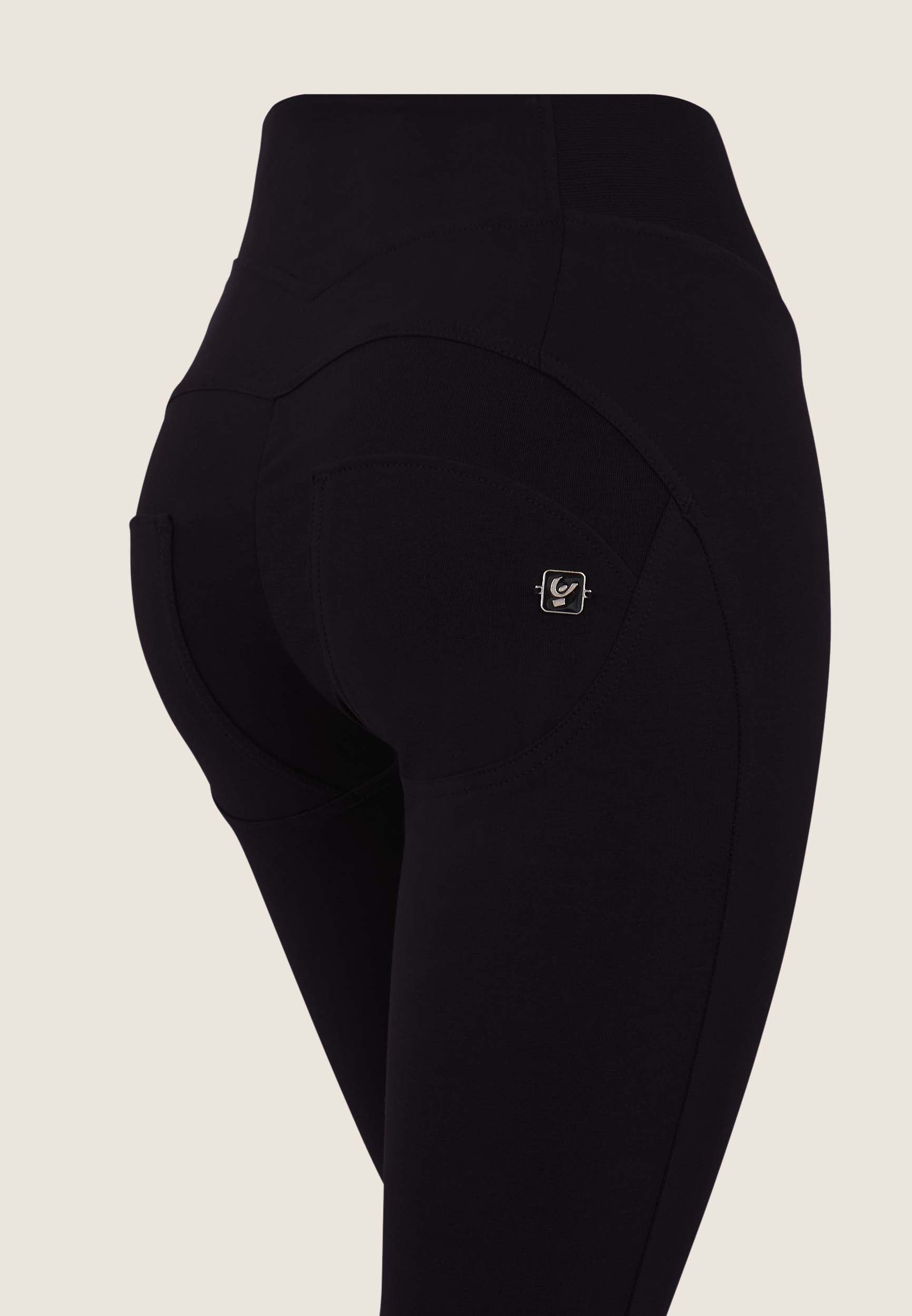 WR.UP® super skinny push-up 7/8 length trousers in heavy organic stretch cotton jersey. High waist with central zip and large side inserts in jacquard elastic, for a graphic effect that enhances the profile of the leg.