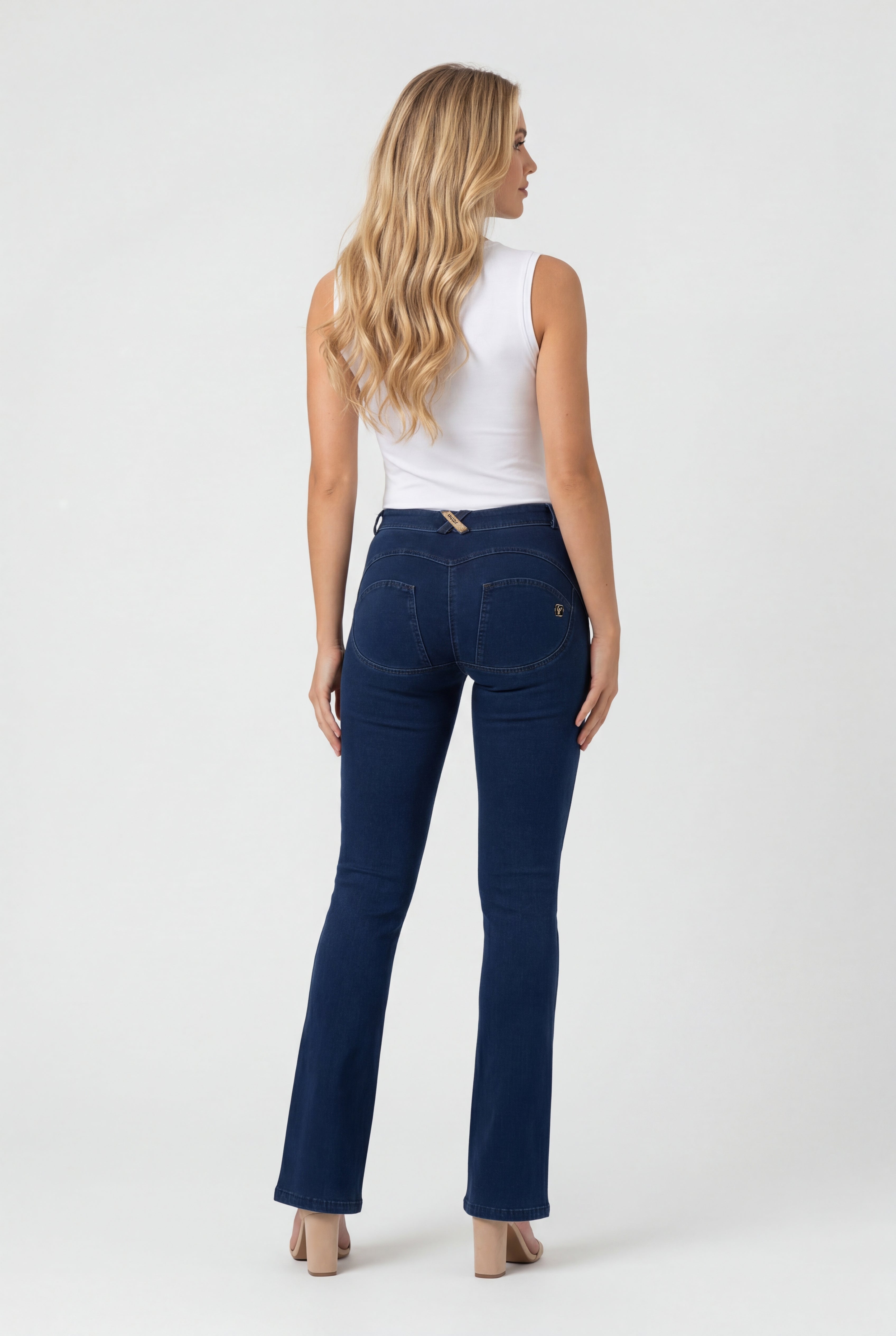 WR.UP Push-Up Regular Waist Mini Flare Denim Jeans - Denim Dark Blue - Blue Seam