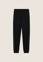 Men's athletic trousers in a regular fit and length, made of baby French Terry for maximum comfort. They feature a regular waist with inner elastic and drawstring for a customised fit, regular legs with panel stitching, and a ribbed cuff hem that enhances the line of the garment. Tone-on-tone side bands run from below the knee to the bottom of the leg, and the rubberised logo print on the left hip adds a distinctive, technical touch. Slant besom pockets and a back patch pocket complete the garment, ideal for everyday use and sports activities.