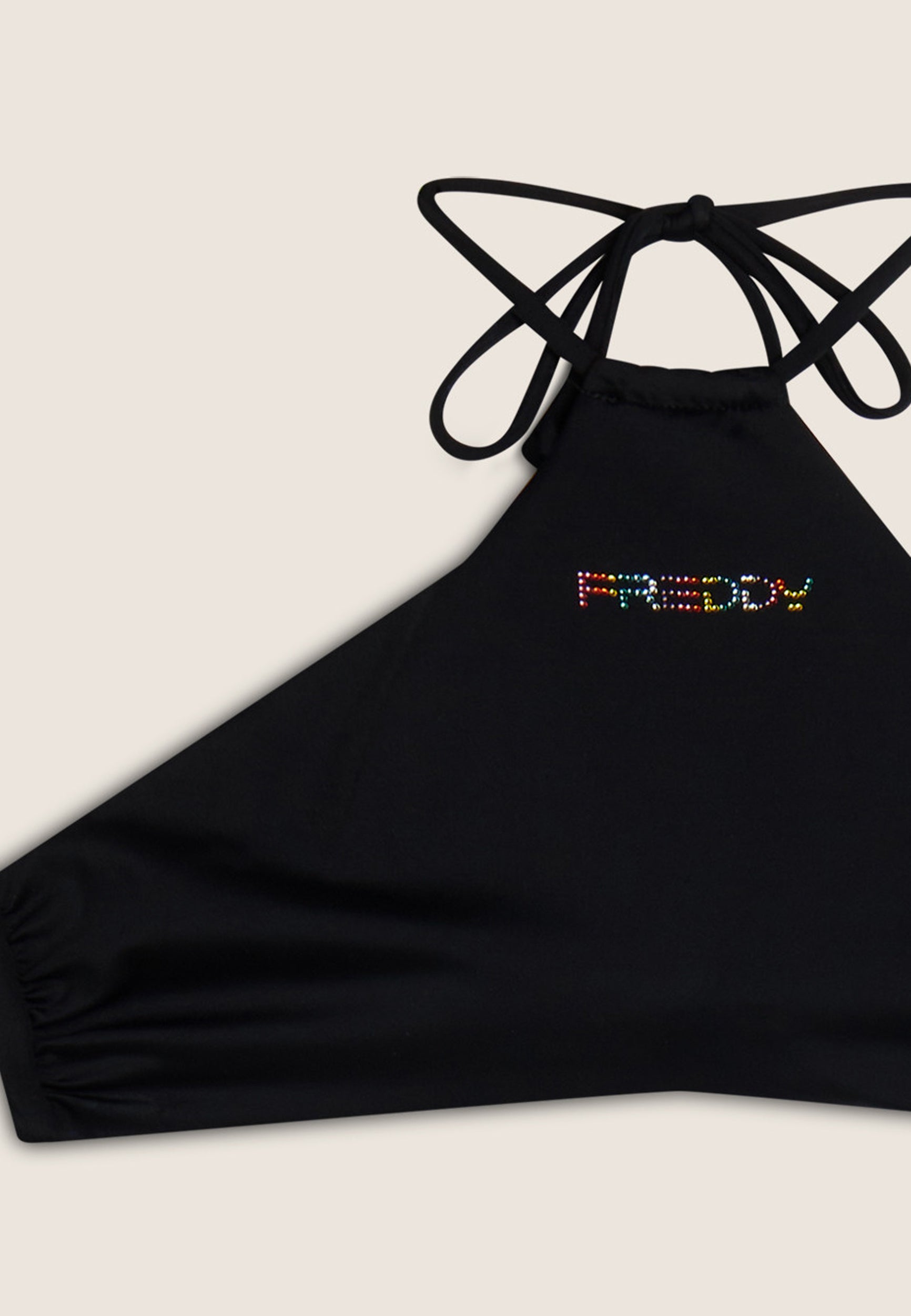 Freddy Bikini-Neckholder-Top mit strassbesetztem Freddy Logo - BLACK