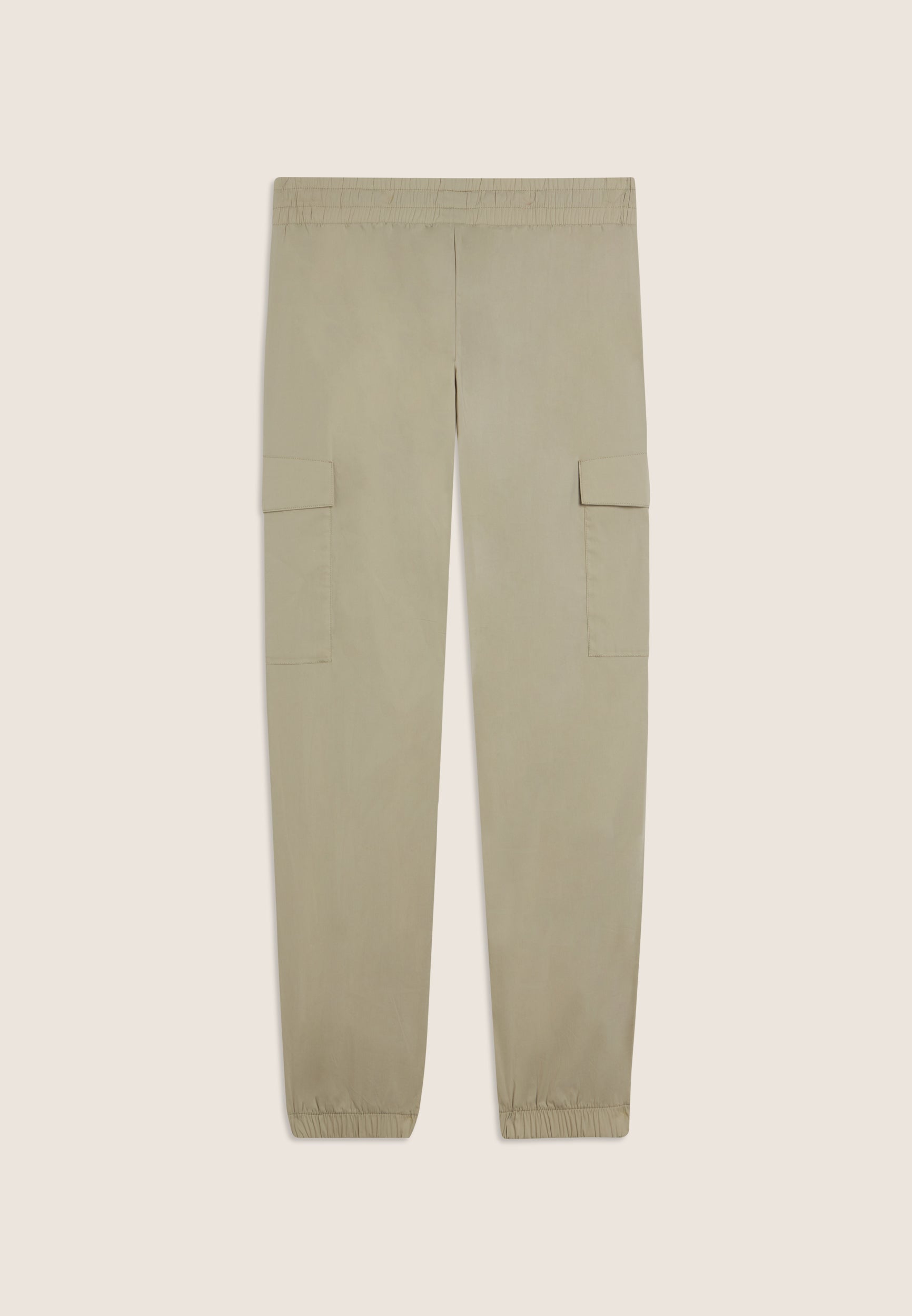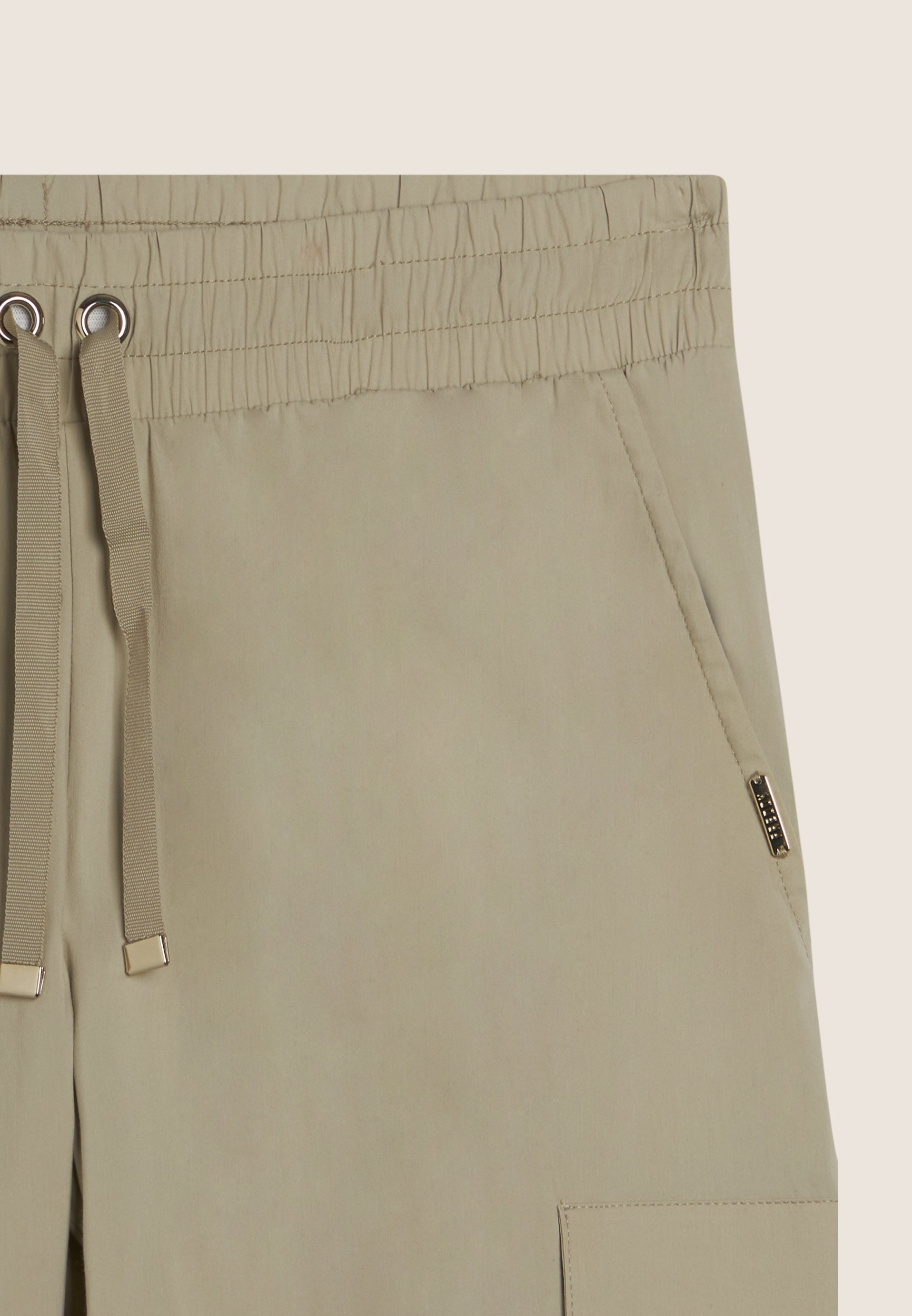 Regular-fit cargo trousers with a regular waist and drawstring and inner elastic for a gathered effect. The bottom is finished with internal elastic. Side flap pockets on the outer thighs and slant besom pockets add functionality and style. An exclusive detail is the golden FREDDY logo tab on the left pocket opening. Made of stretch poplin, these trousers are light and easy to wear, offering a perfect combination of comfort and sophistication.