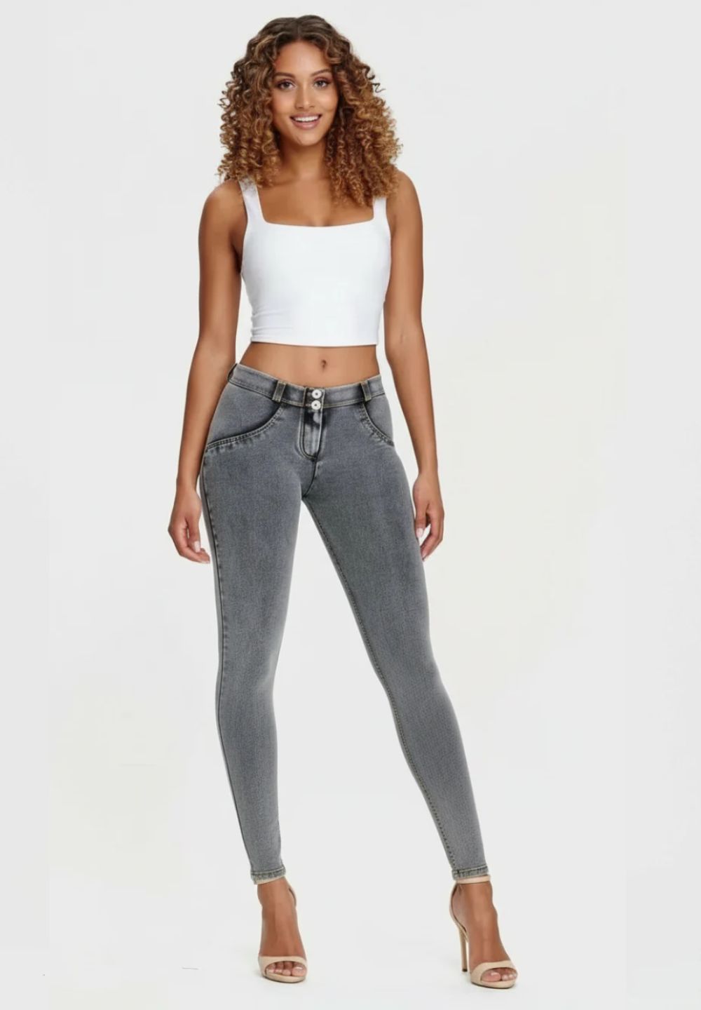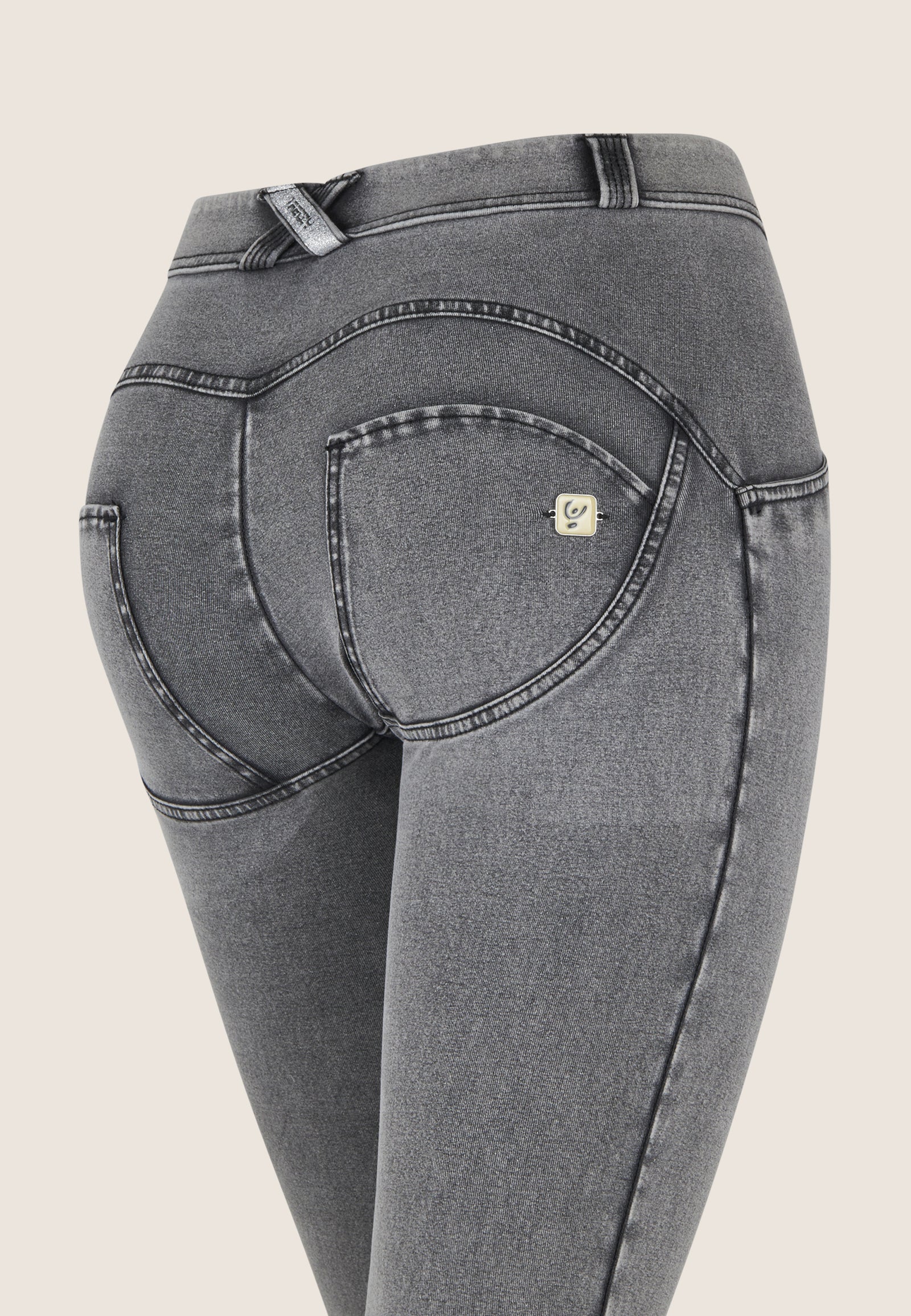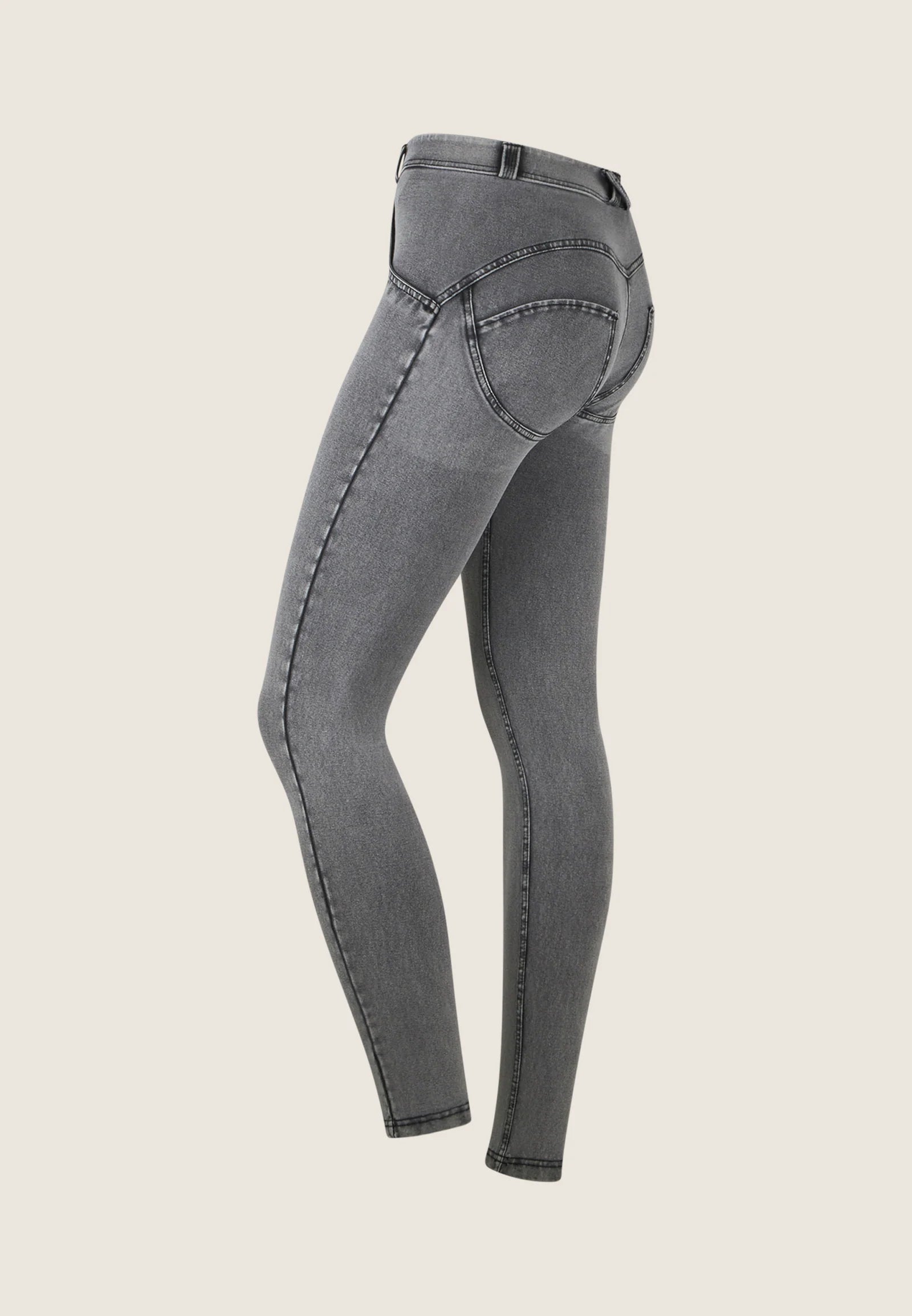 WR.UP® Pants in Grey: designed to flatter and move with you. They feature a sleek skinny fit that hugs your curves. Adding to that is a comfortable mid waist for everyday ease. The look is completed by a timeless full length, perfect for any season. Crafted combining a timeless denim aesthetic with enhanced comfort and flexibility. As part of the WR.UP® line, they feature patented technology designed to naturally enhance and sculpt your silhouette. Italian design that radiates confidence and style.