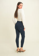 WR.UP® super skinny push-up 7/8 length trousers in heavy organic stretch cotton jersey. High waist with central zip and large side inserts in jacquard elastic, for a graphic effect that enhances the profile of the leg.