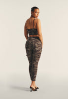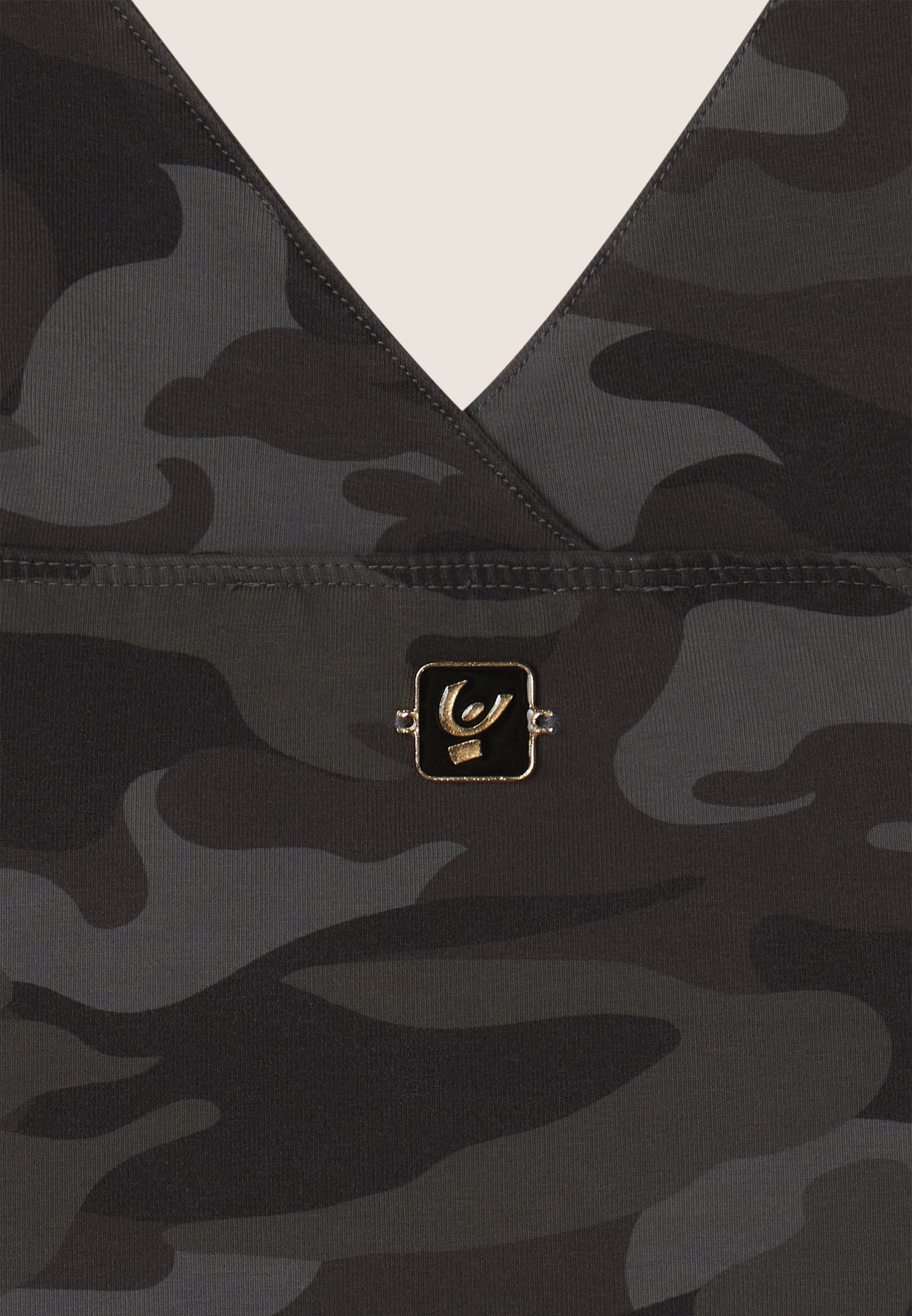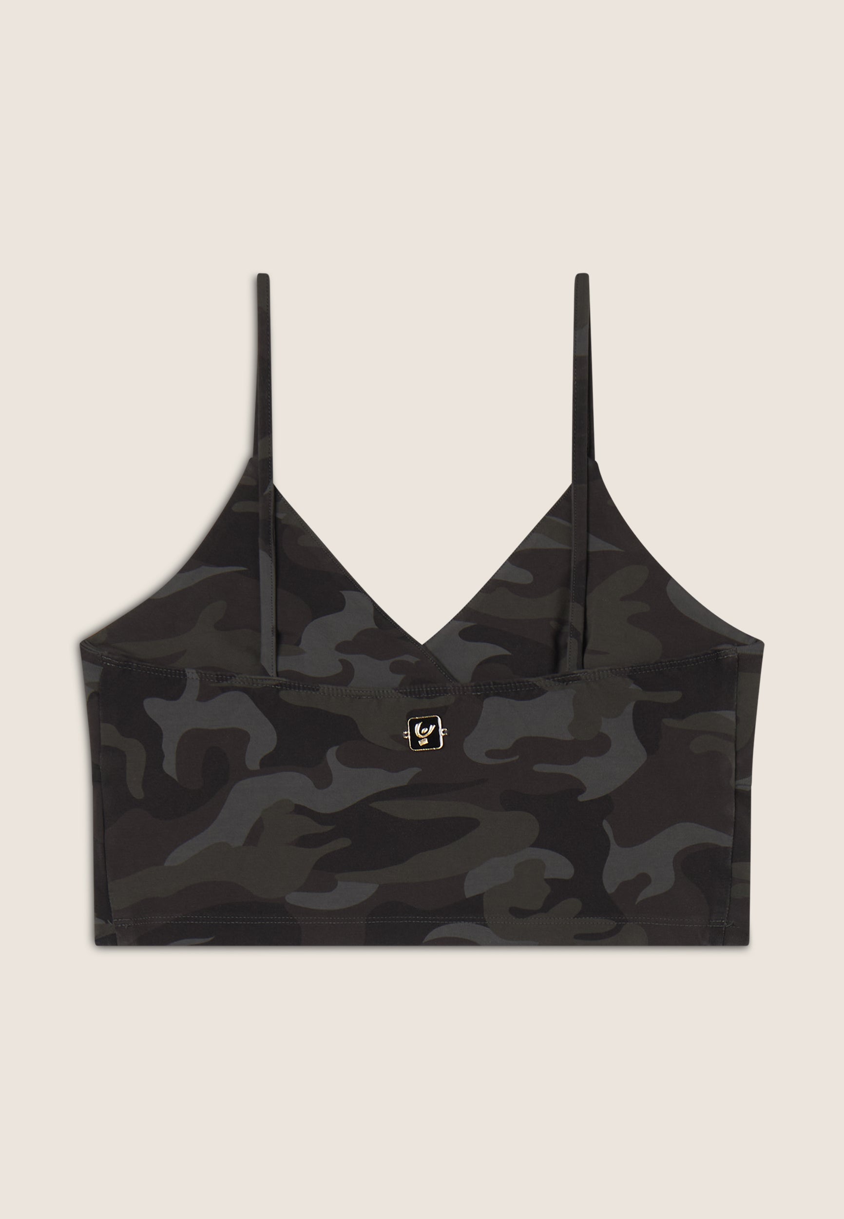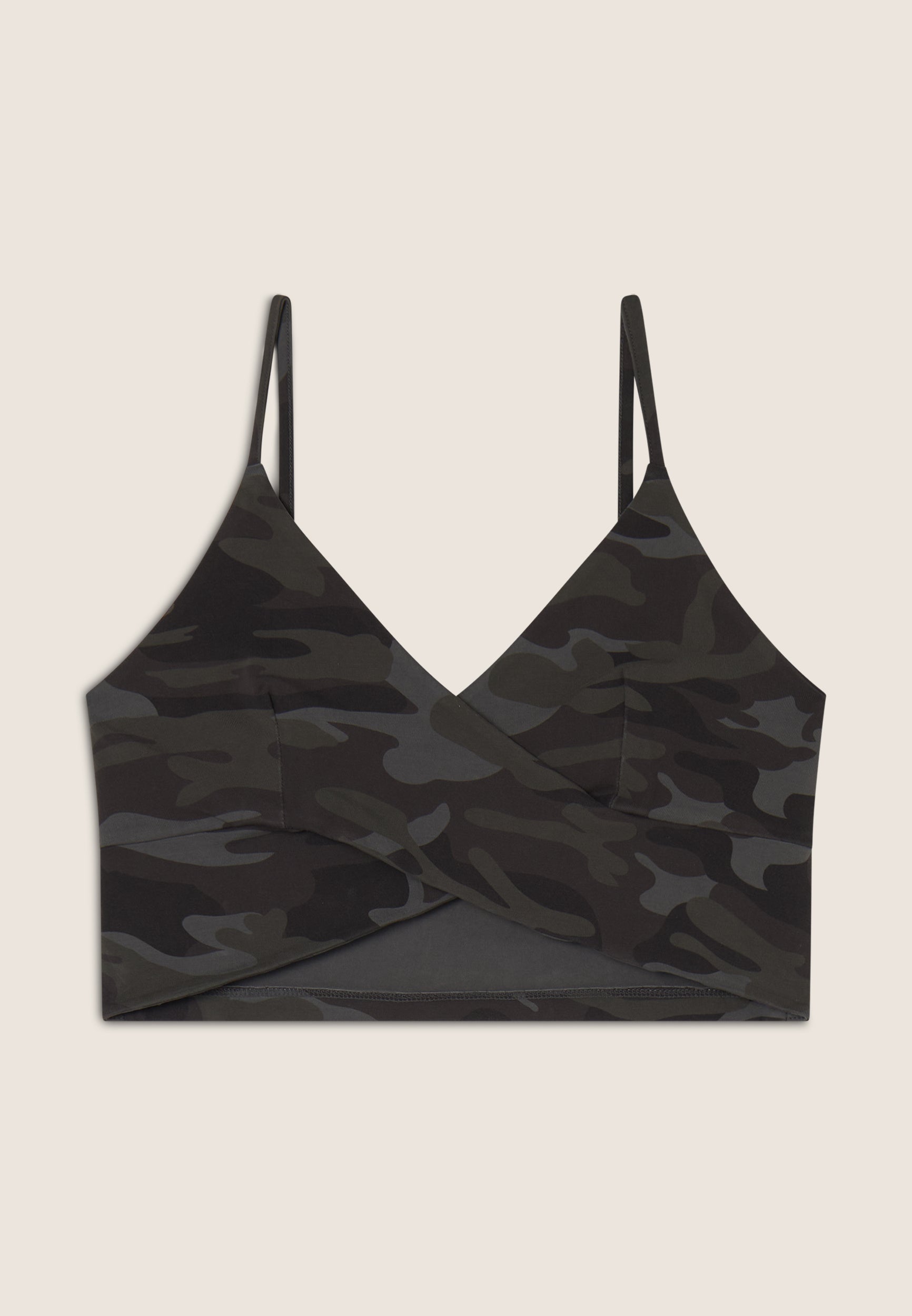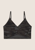 Camouflage print crop top with front crossovers