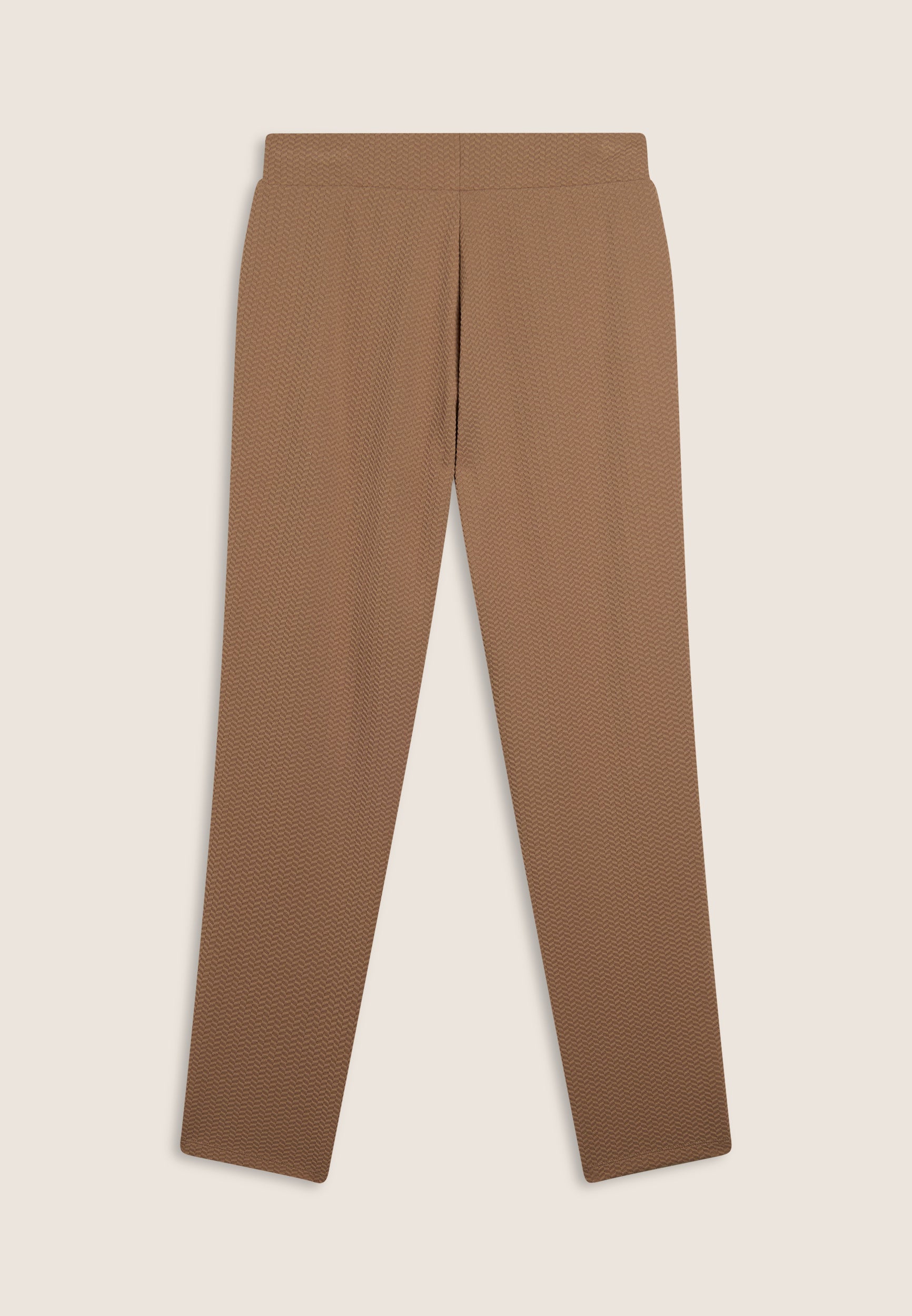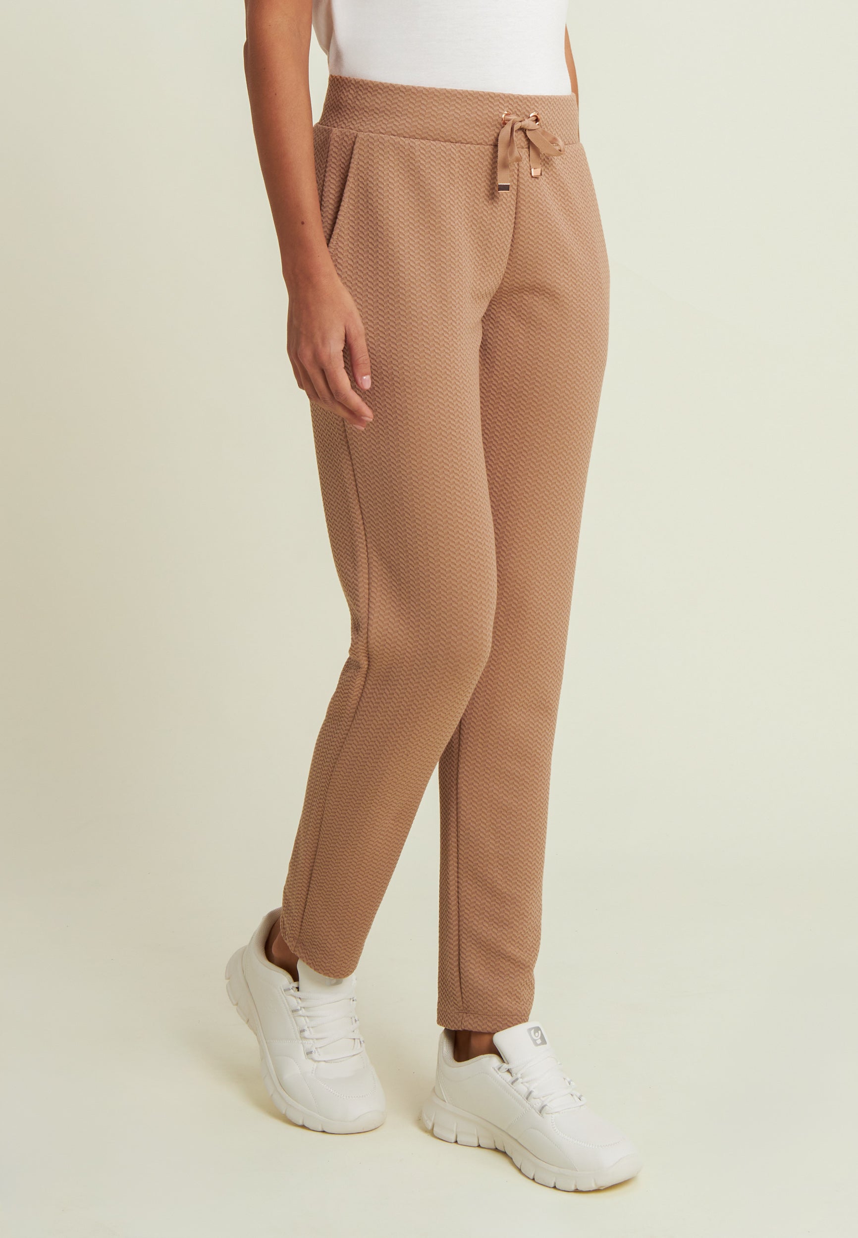 Women's trousers with regular and comfortable fit, made entirely from double-layered performance fleece with sophisticated micro-braid texture. The regular waist has an adjustable drawstring for a customised fit. Straight bottom, comfortable and practical besom pockets, with FREDDY logo plaque applied discreetly to the edge of the left pocket.