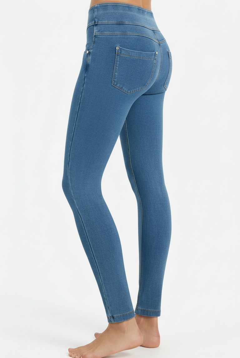 The NOW® Pants in Blue combine iconic Freddy style with exceptional comfort. They feature a comfortable mid waist for everyday ease. Adding to that is a sleek skinny fit that hugs your curves. The look is completed by a timeless full length, perfect for any season. Crafted designed with a stretch denim-effect material for authentic style and easy movement. Belonging to the NOW® collection, these pants prioritize ultimate comfort and freedom, moving effortlessly with you. Italian design that radiates confidence and style.
