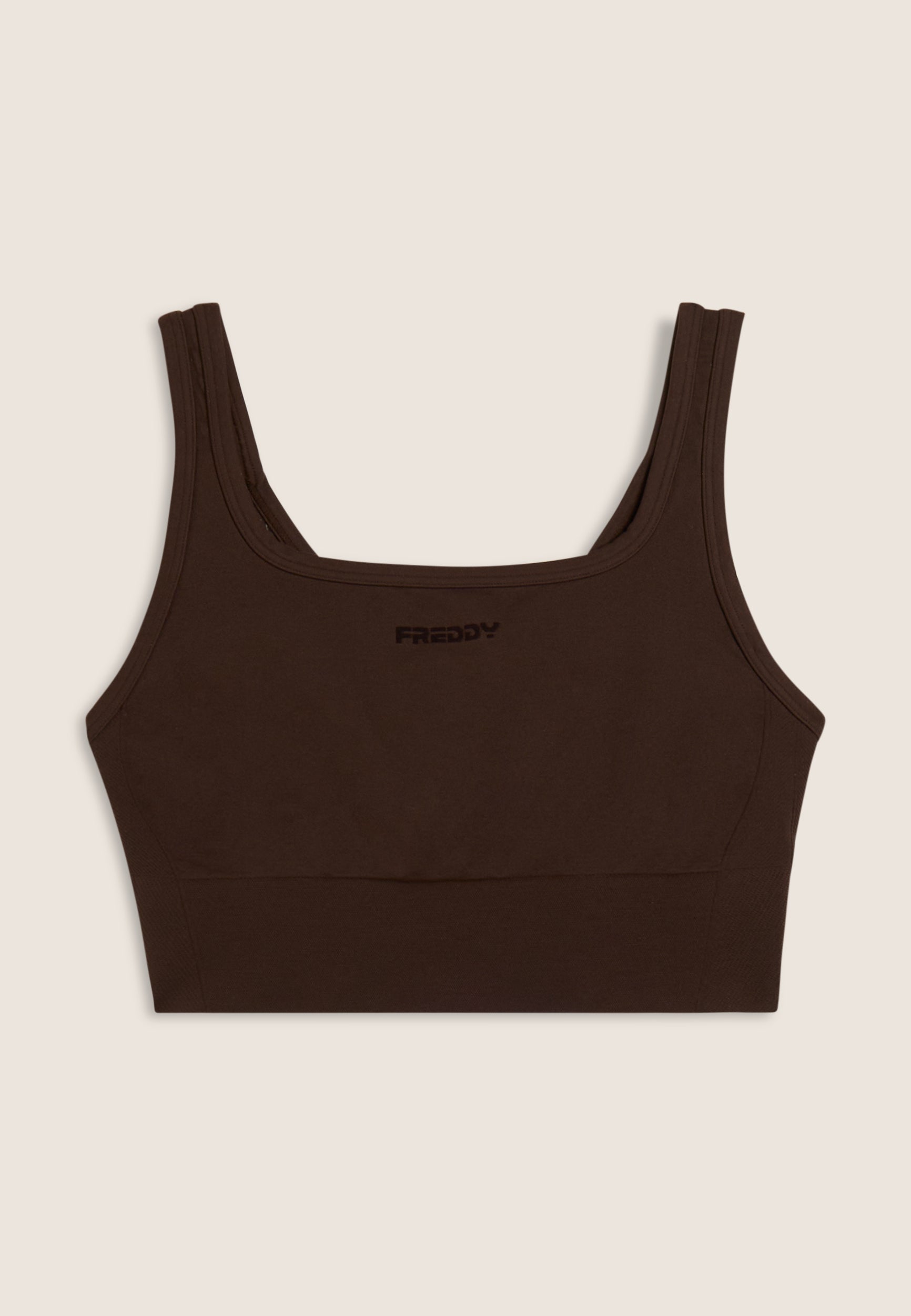 Medium support sports bra with removable moulded cups, ideal for daily training. The cut is designed to offer support and style: round neckline, regular shoulder straps crossed at the back, and side inserts in herringbone textured fabric. The nylon jersey fabric is breathable and durable.