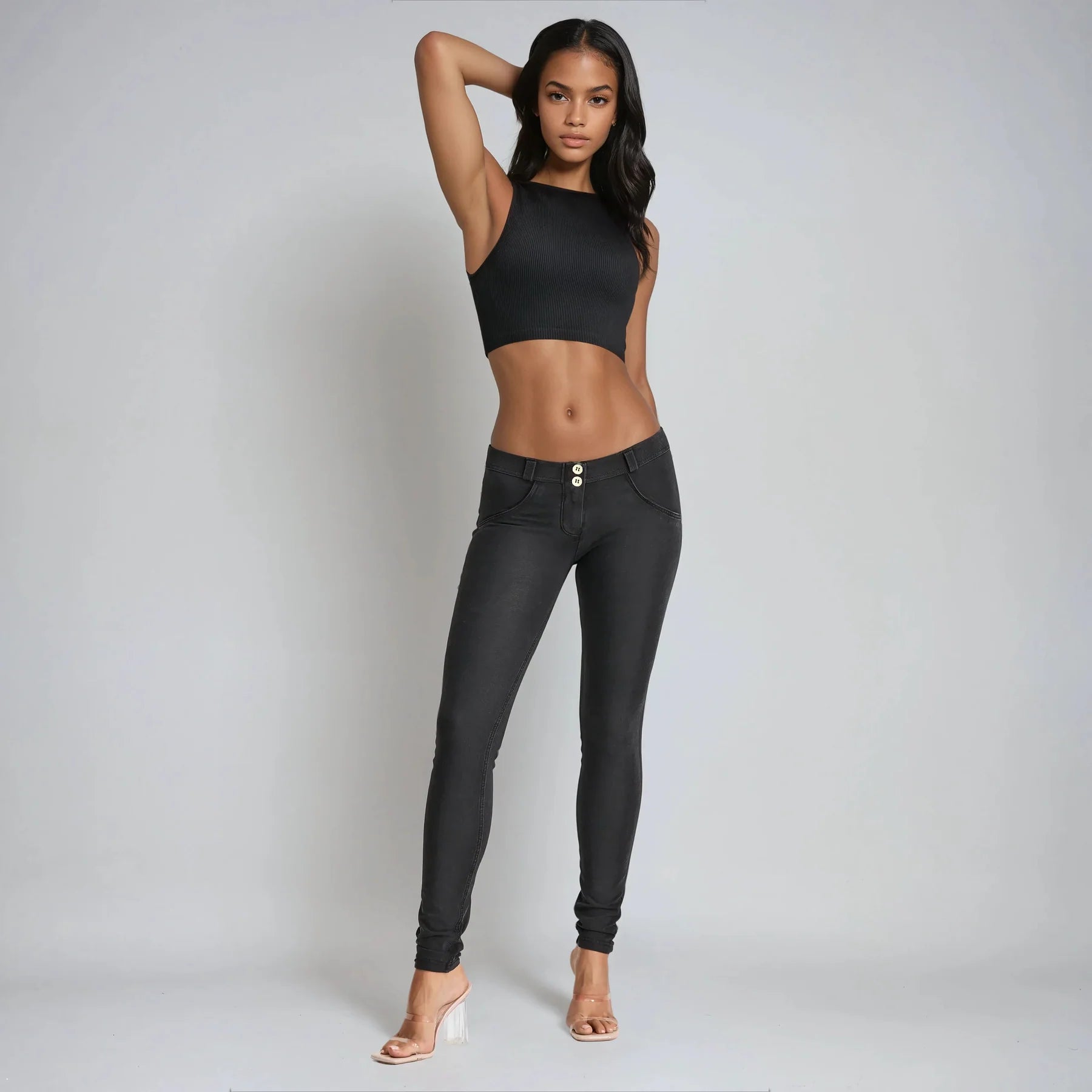 Experience the unique fit and feel of the WR.UP® Pants in Black. They feature a sleek skinny fit that hugs your curves. Adding to that is a relaxed low waist for a casual, modern vibe. The look is completed by a timeless full length, perfect for any season. Crafted to offer the classic look of denim with the comfort of soft, flexible fabric. As part of the WR.UP® line, they feature patented technology designed to naturally enhance and sculpt your silhouette. Pants that effortlessly blend comfort and fashionable looks.