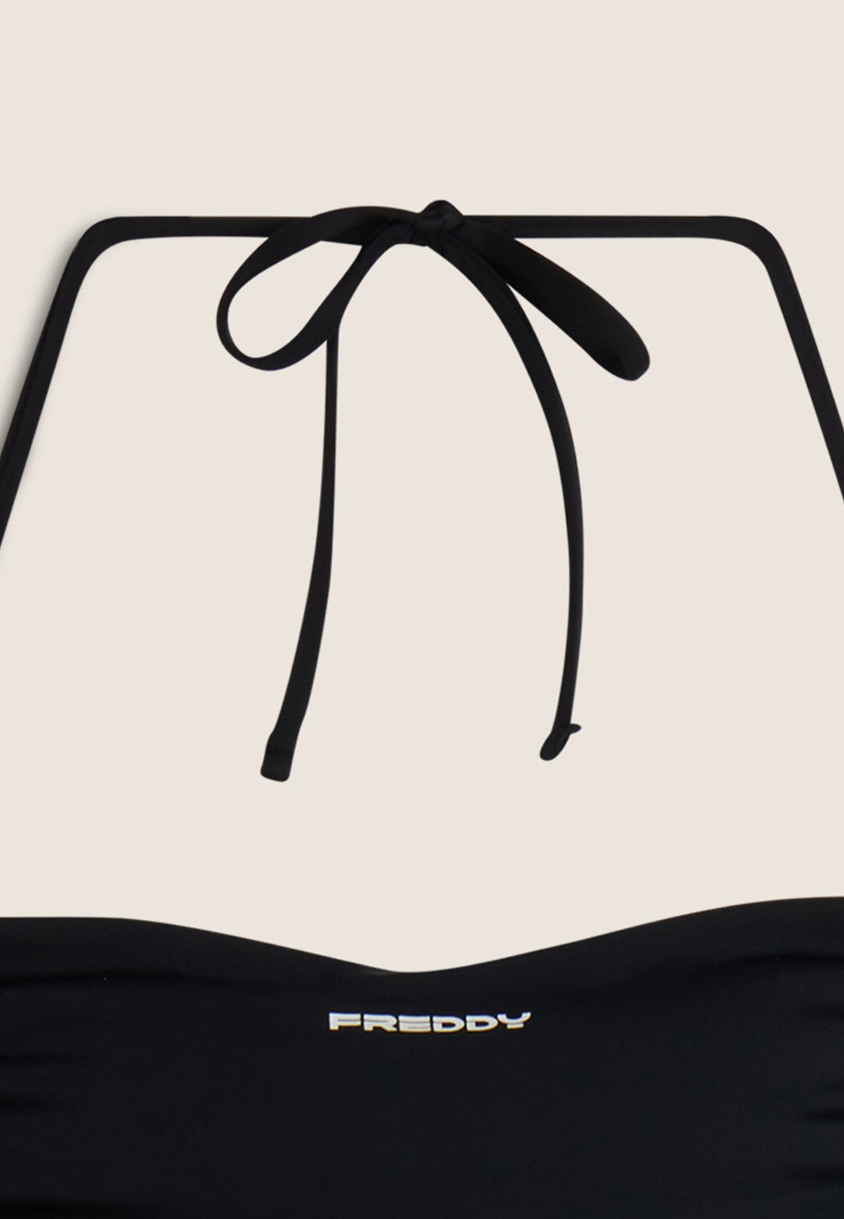 Bandeau-bikinitoppi, jossa Freddy-logo, mustana uusimmasta mallistosta. Valmistettu joustavasta materiaalista, joka takaa helpon käytön ja joustavuuden. Laadukas Freddy-tuote.