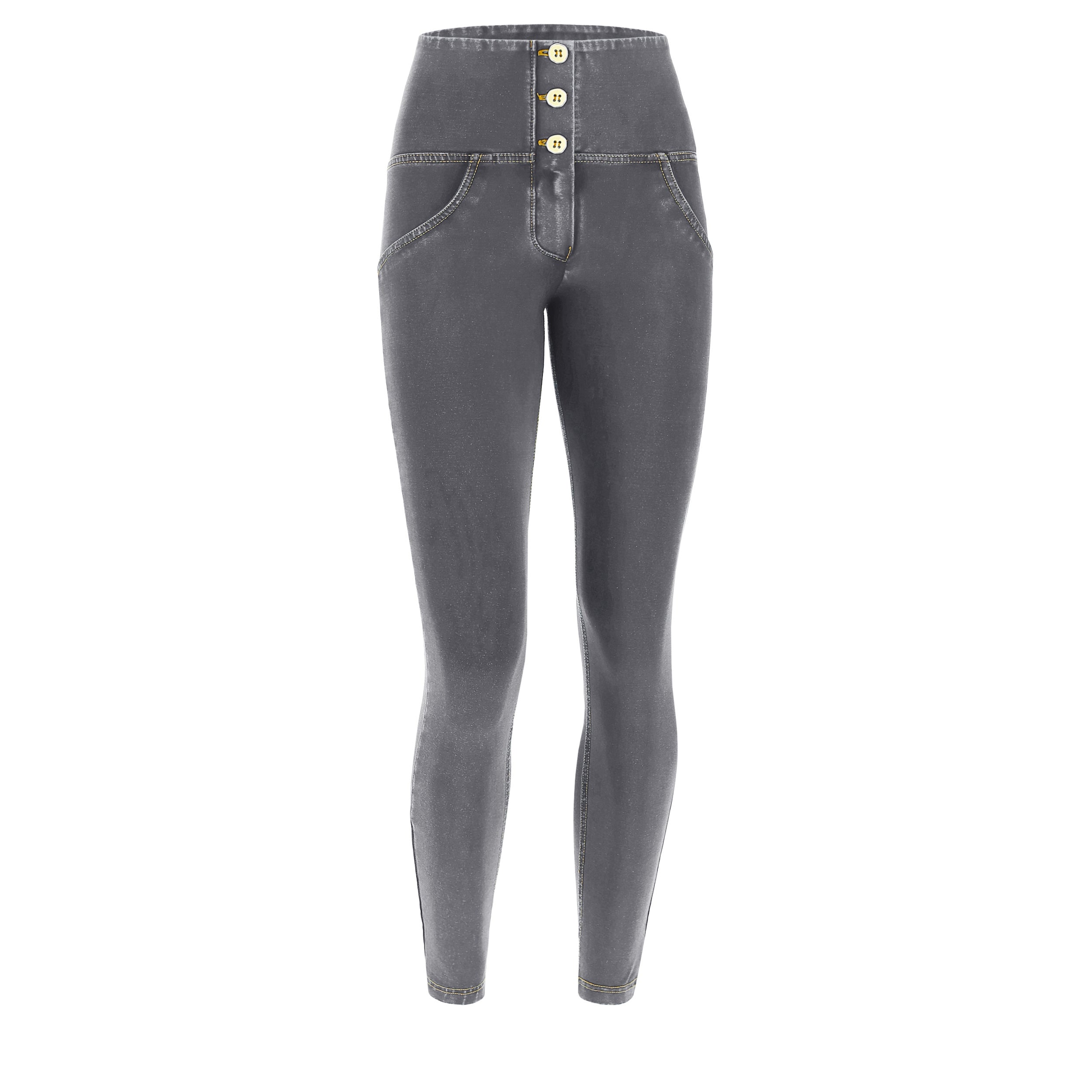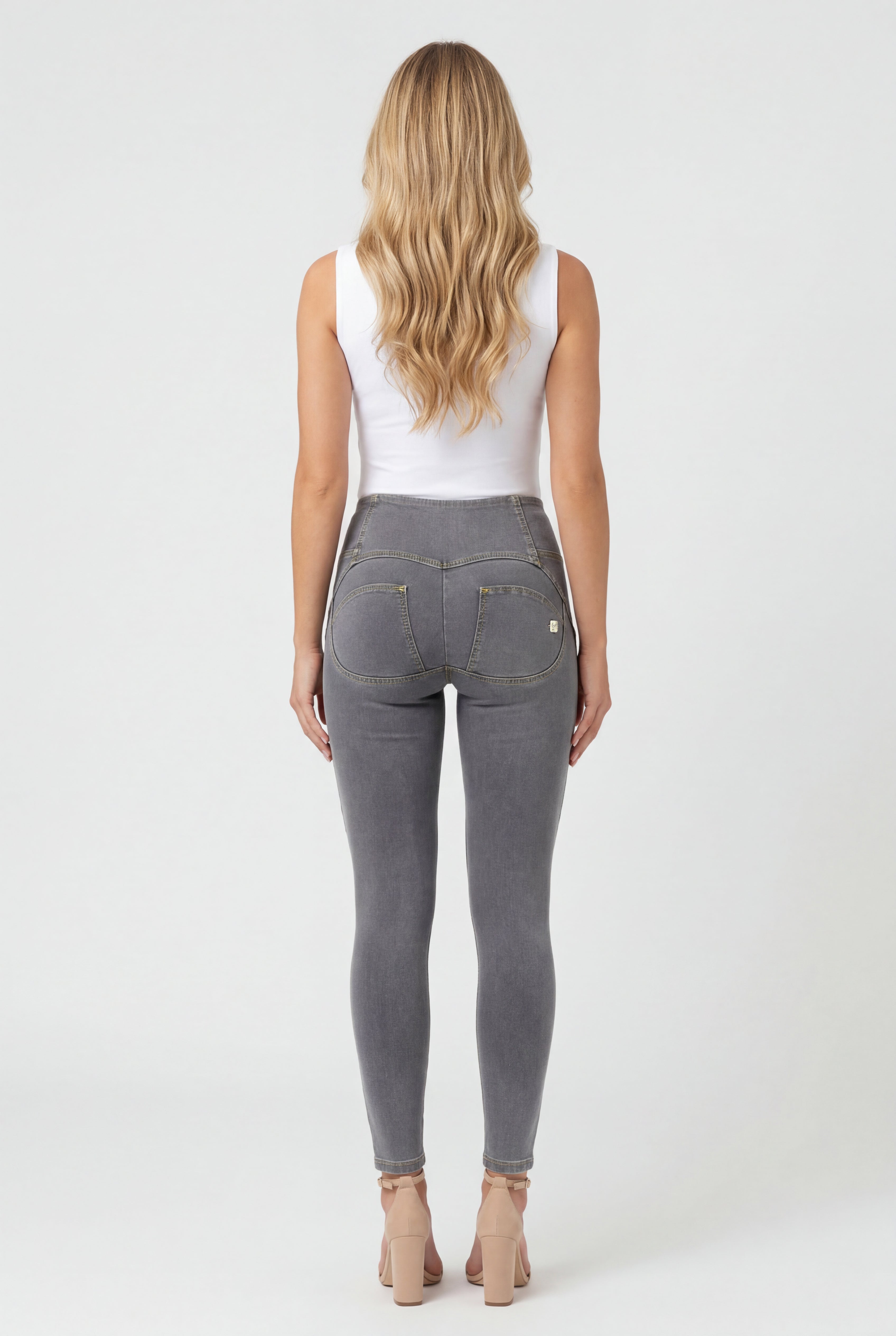 WR.UP Push-Up Button High Waist Skinny 7/8 Denim Jeans - Denim Gray - Yellow Seam