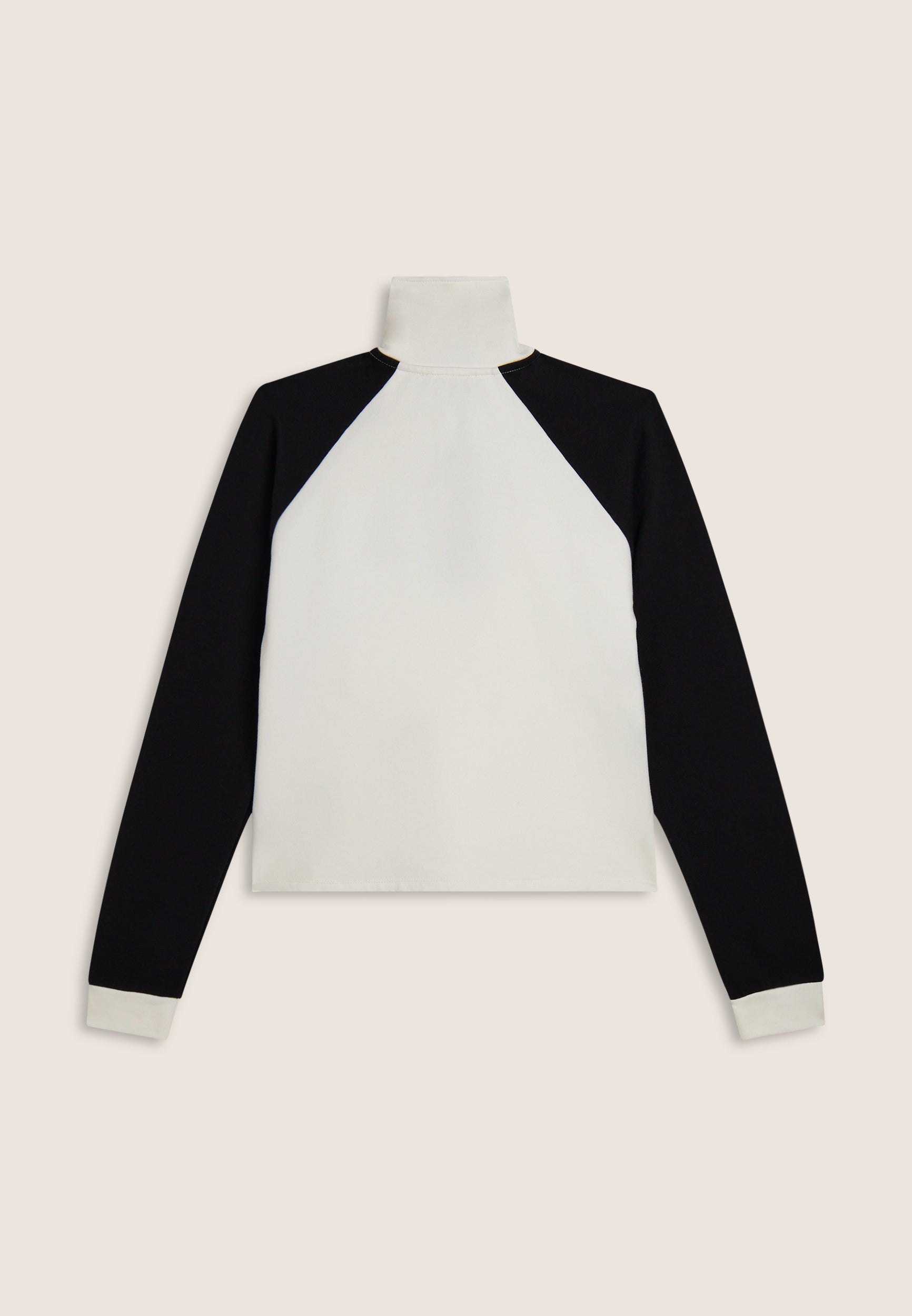 Two-tone cropped sweatshirt with half-zip and turtleneck
