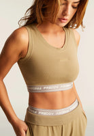 Ett mångsidigt basplagg från Freddy: Sports Bra i Grå. Tillverkade med sportiga detaljer perfekta för en aktiv livsstil eller athleisure-look. Upptäck kvaliteten och stilen från Freddy.
