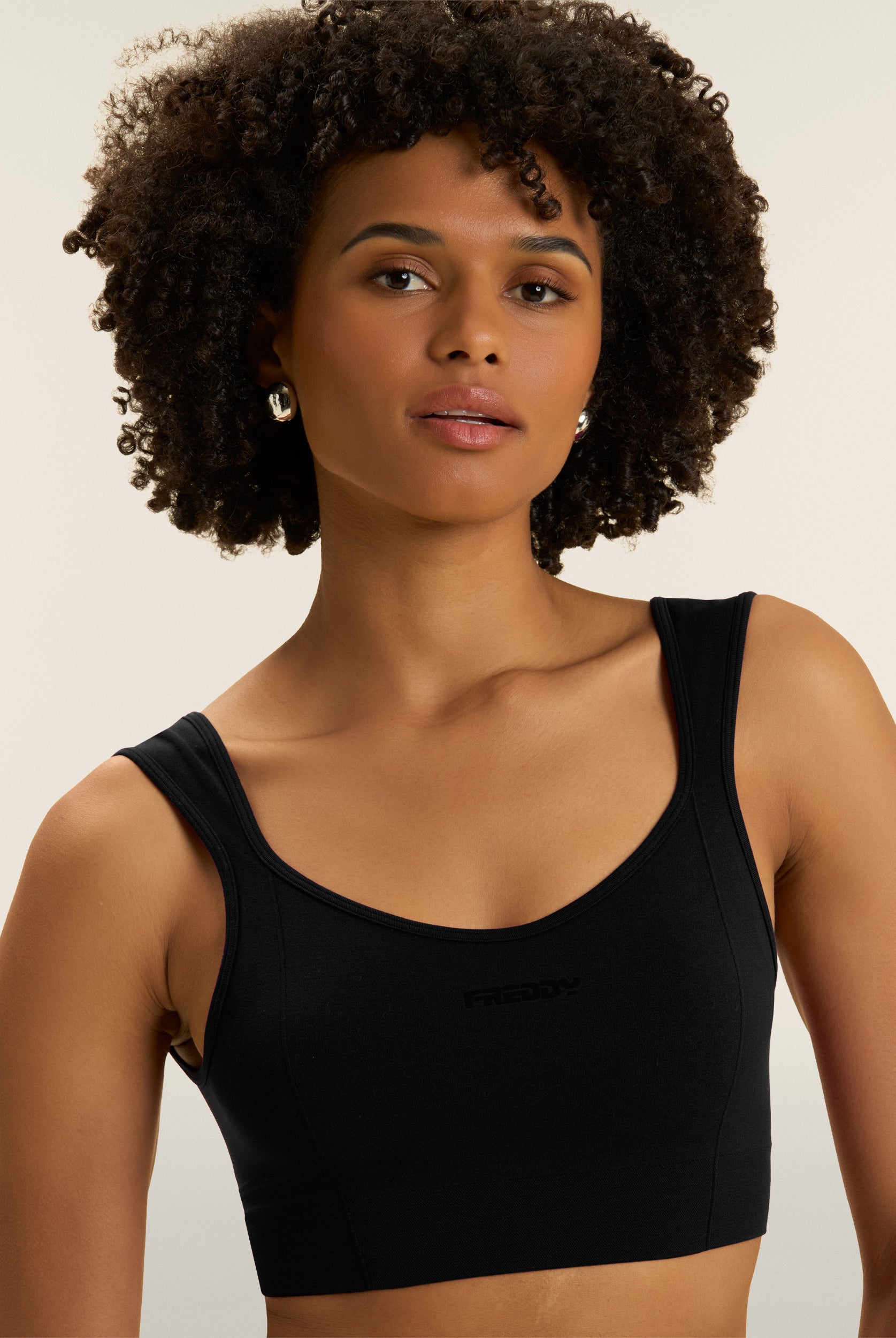100% Made in Italy ist unsere Kollektion mit ökologischen und nachhaltigen Produkten, die vollständig in Italien entwickelt, designed und produziert werden. Der Kern der Kollektion ist die ökologische Wirkung und das Ziel, einen kleineren ökologischen Fußabdruck zu lassen. Für die 100% Made in Italy Kollektion wählt Freddy Stoffe von Brugnoli™. Diese basieren auf der Br4™-Technologie, bei deren Entwicklung das Augenmerk auf einem ökologischen und nachhaltigen Produktionsprozess liegt. Das 100% biobasierte Polyamid (EVO von Fulgar®) besteht aus Rizinusöl. Das Resultat ist BIO D.I.W.O.®: leichtes, blickdichtes, schnell getrocknetes, thermoregulierendes und nachhaltiges Material. Aus diesem revolutionären Stoff besteht für Yoga entworfene Kleidung, in der du eins mit deinen Körperbewegungen bist und dich flexibel und selbstbewusst fühlst.