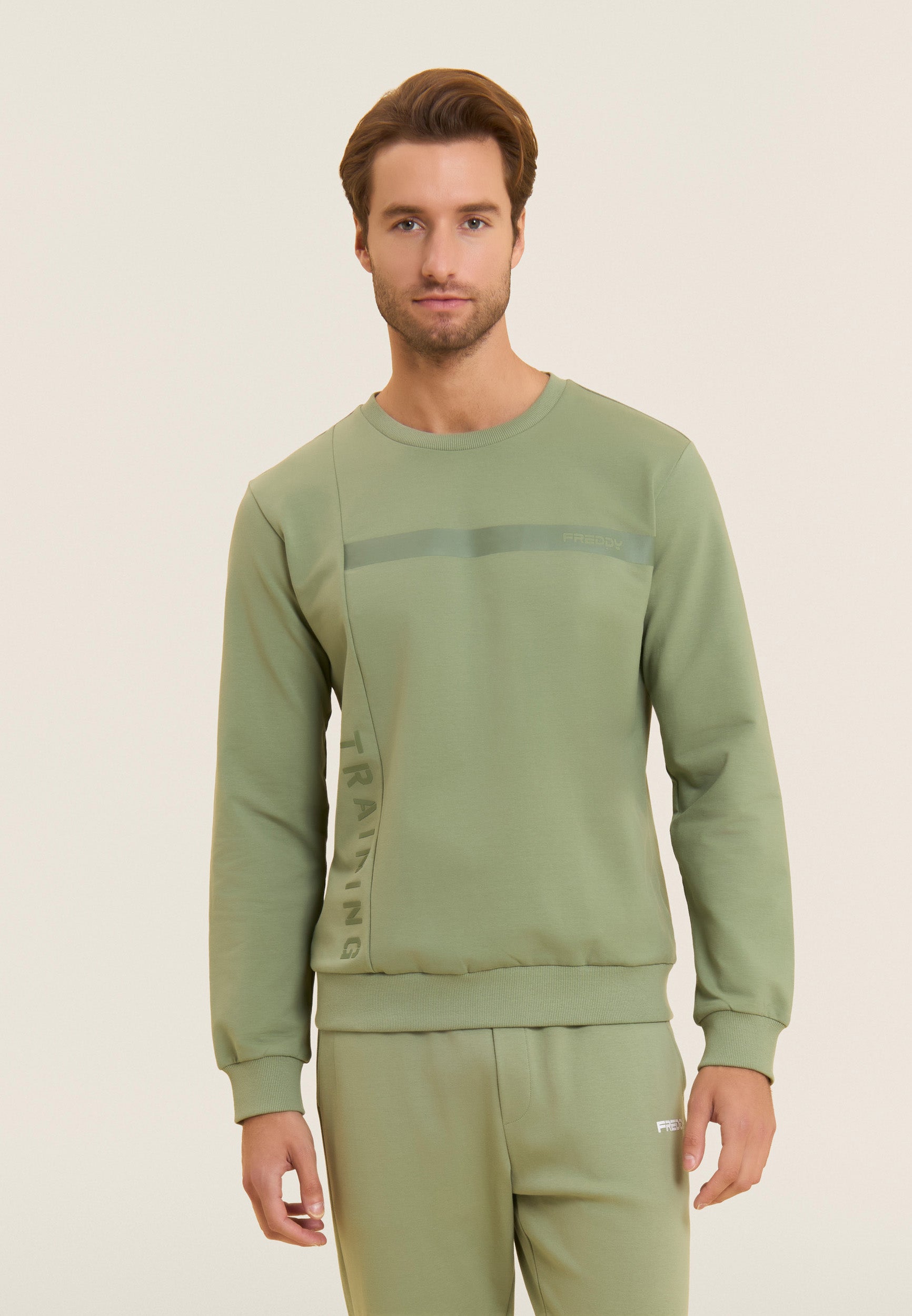 Men's sweatshirt in regular fit and length, made of Baby French Terry, a soft, slightly stretchy fabric perfect for everyday activity. The crew neck, cuffs and bottom band are ribbed for a stable and comfortable fit. The sporty design of the panel stitching is enhanced by the FREDDY logo band on the chest and the vertical 'TRAINING' lettering on the right side, both printed tone-on-tone with a rubberised effect for a technical and modern look.