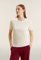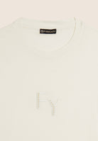 Crew neck t-shirt with perforated logo embroidery - Egret White