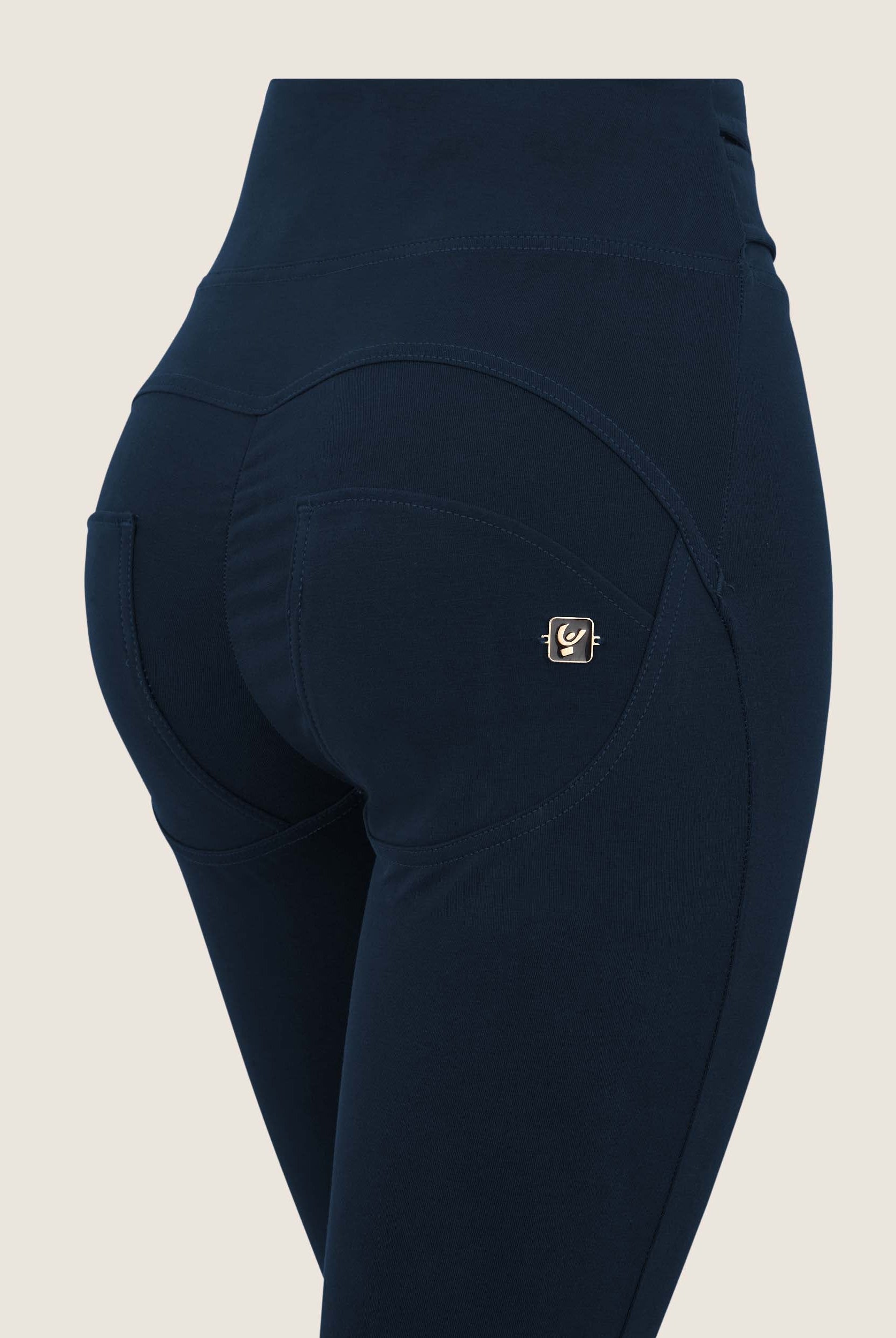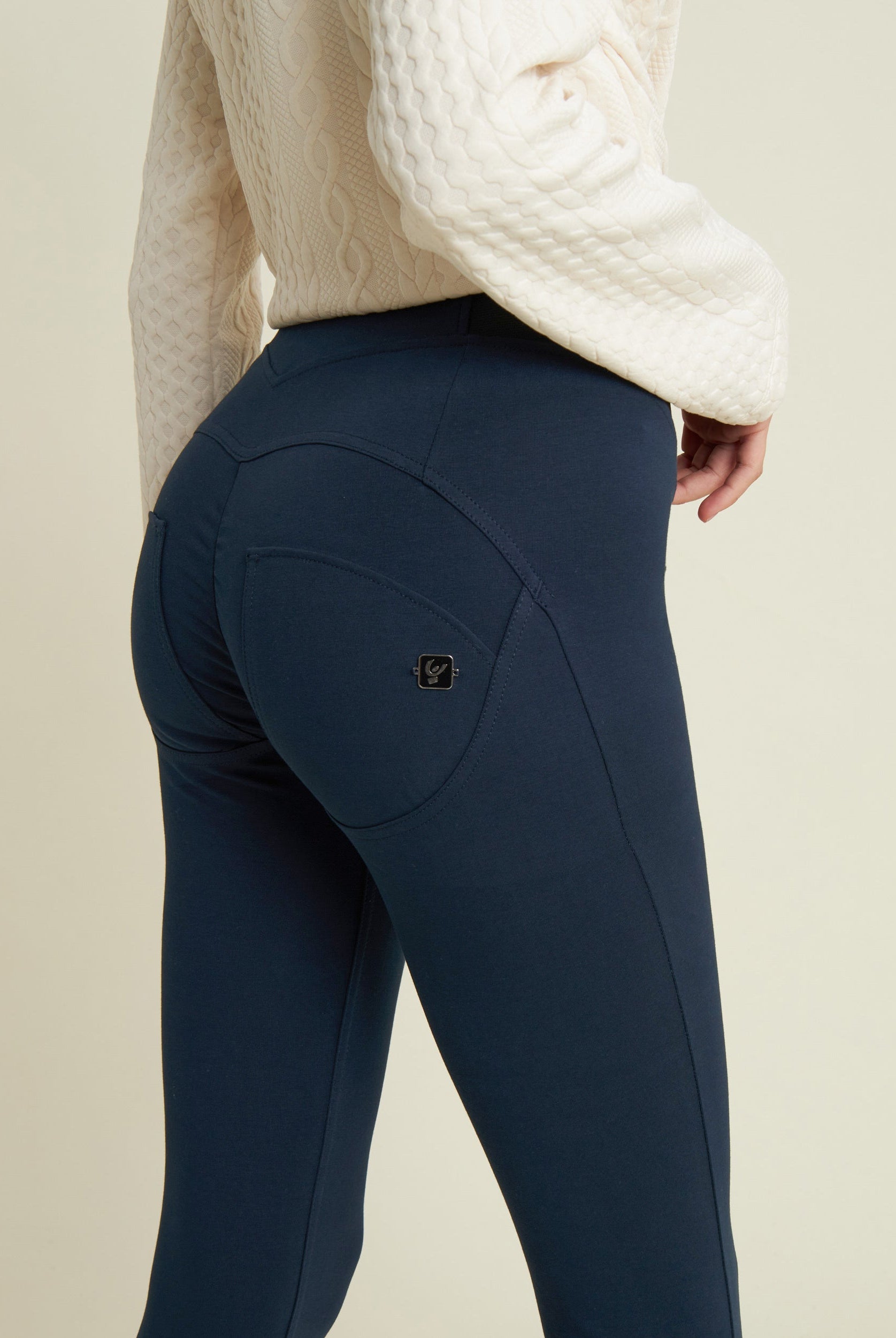 Die Mid-Waist-Modelle sitzen zwischen der Taille und dem Bauchnabel. Alle unsere mittlere Jeans haben vorne drei Freddy-typische Knöpfe. Sie sind etwas höher als unsere Regular-Waist-Hosen, aber nicht ganz so hoch, wie die High-Waist-Modelle. Sie haben einen bequemen, hohen Bund ohne Silikonstreifen, und die Knöpfe sorgen für einen perfekten Sitz. Jeans in Mid Waist eignen sich vor allem für kurvigere Frauen, die mehr Stütze und Form für den Bauch und die Taille möchten. Zusätzlich zaubern die Hosen natürlich den perfekten Po.