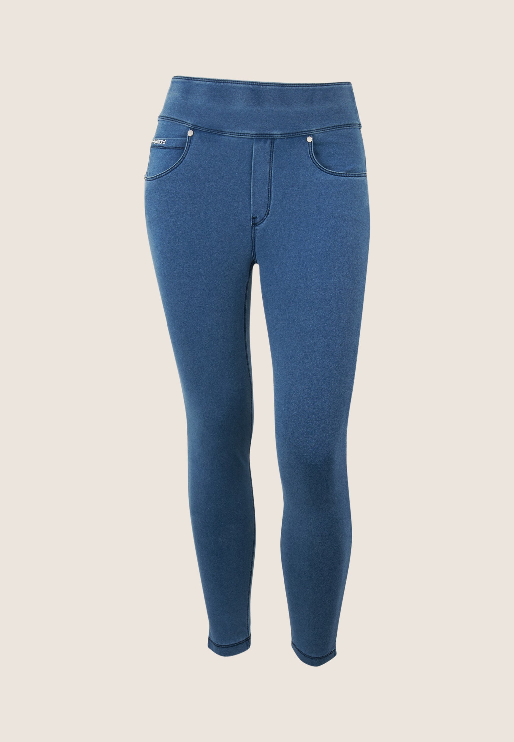 Upplev den unika passformen och känslan hos NOW® Pants i Blå. De har en modern 7/8-längd som subtilt framhäver dina anklar. Därtill kommer en bekväm medelhög midja för vardagskomfort. Looken avrundas med en slank skinny-passform som smiter åt runt dina kurvor. Tillverkade erbjuder den klassiska denimlooken med komforten hos ett mjukt, flexibelt tyg. Byxorna tillhör NOW®-kollektionen och prioriterar ultimat komfort och frihet, och rör sig obesvärat med dig. Ditt förstahandsval för dagar då du bara vill känna dig bekväm.